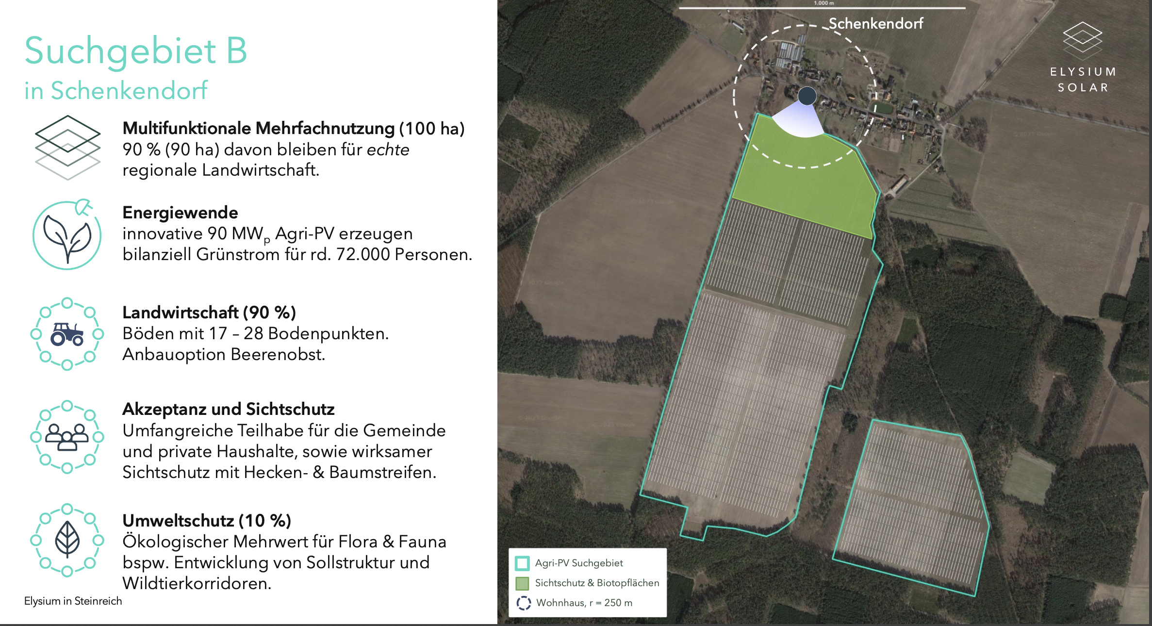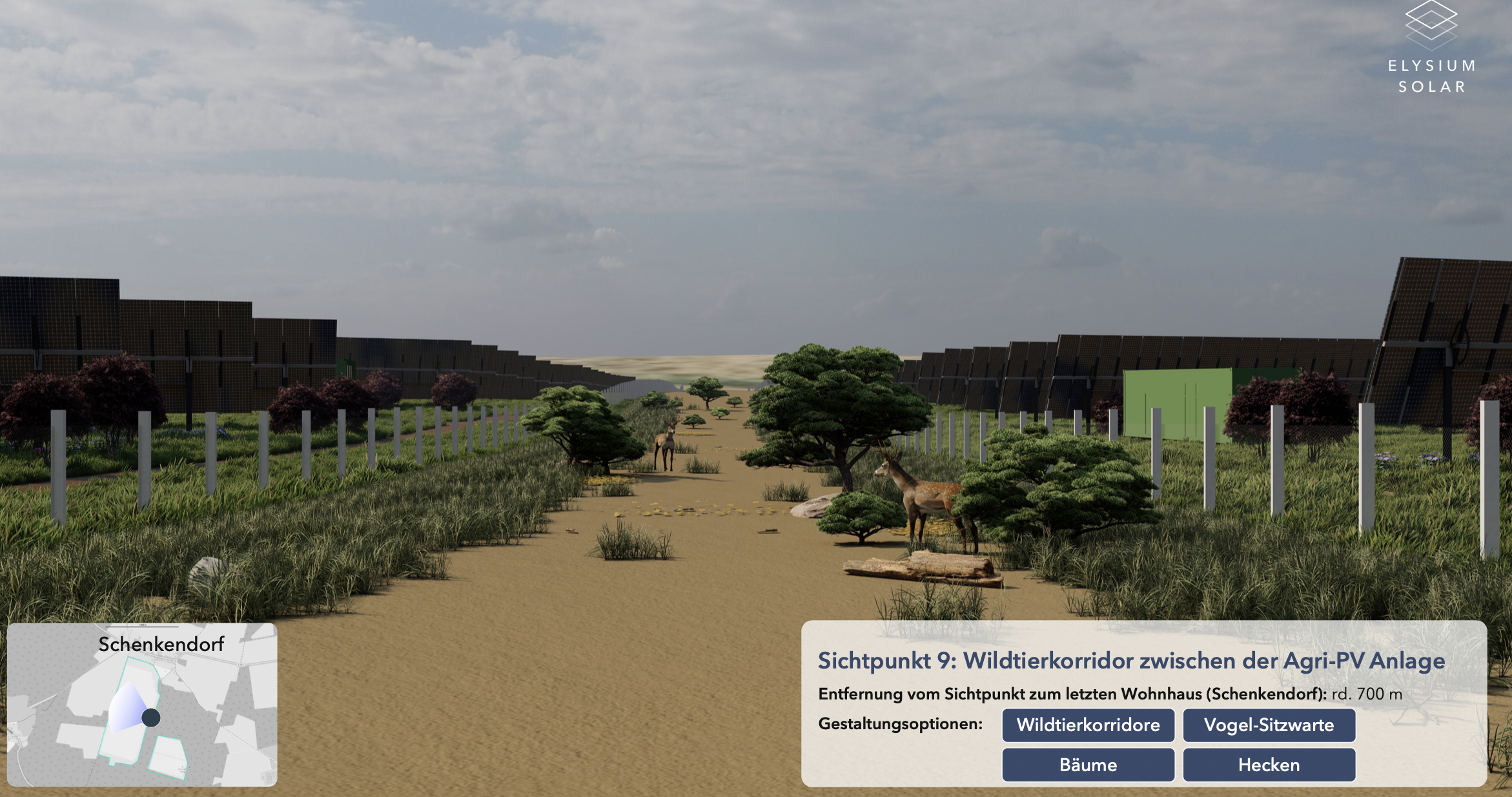In Schenkendorf ist ein Solarpark auf ca. 100 Hektar geplant. Hierzu gab es kürzlich eine Informationsveranstaltung. Die Planung sieht vor, dass die Fläche weiter landwirtschaftlich genutzt wird und bewegliche Solarmodule in einer Höhe von 3 m installiert werden.